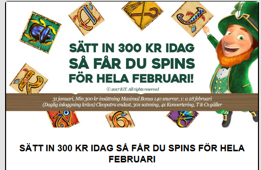 Så här går det till sedan: du måste logga in varje dag under 1-28 februari 2018. När du gör det så får du 5 poäng och dessa poäng kan du använda för att spela på det utvalda kasinospelet Cleopatra.